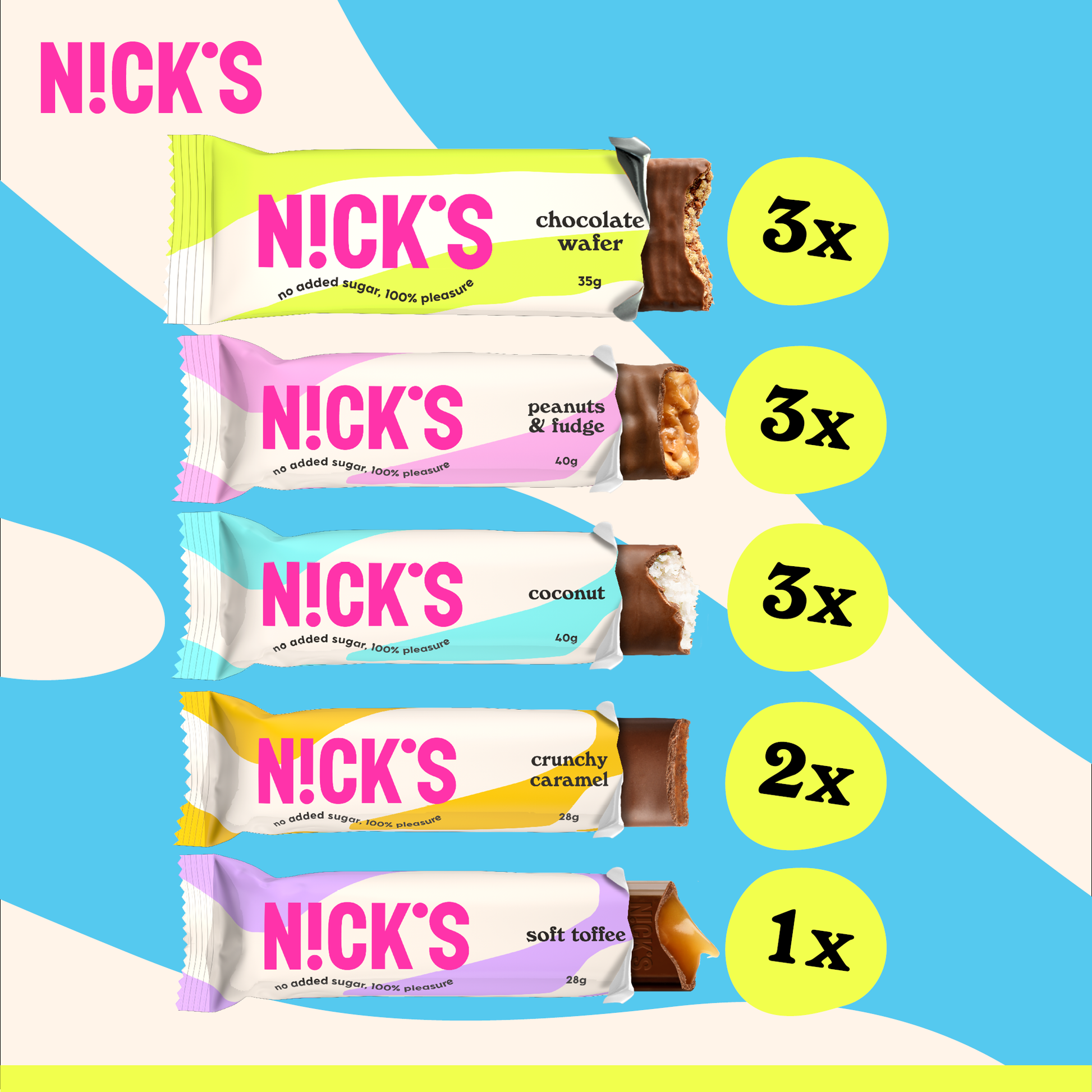 Unser Lieblingsmix enthält 12 unserer beliebtesten Schokoladenriegel ohne zugesetzten Zucker.